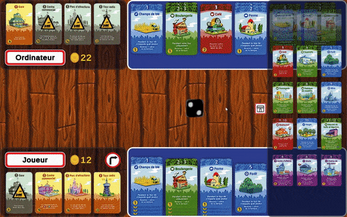 Que dire d'un jeu vidéo reproduisant un jeu de société déjà existant ? Un jeu d'échec, auquel on jouerait en ligne contre un autre joueur, est-il vraiment un jeu vidéo ? « Non ! Il manque une intelligence artificielle ! », rétorqueront certains. Alors un jeu d'échec contre une IA serait en cela beaucoup plus digne de représenter le genre ? Je vous laisse réfléchir à ces questions, en attendant, vous pouvez essayer cette reproduction parfaite du jeu de société Minivilles, dans lequel vous devrez développer votre ville et acheter vos monuments avant votre adversaire !